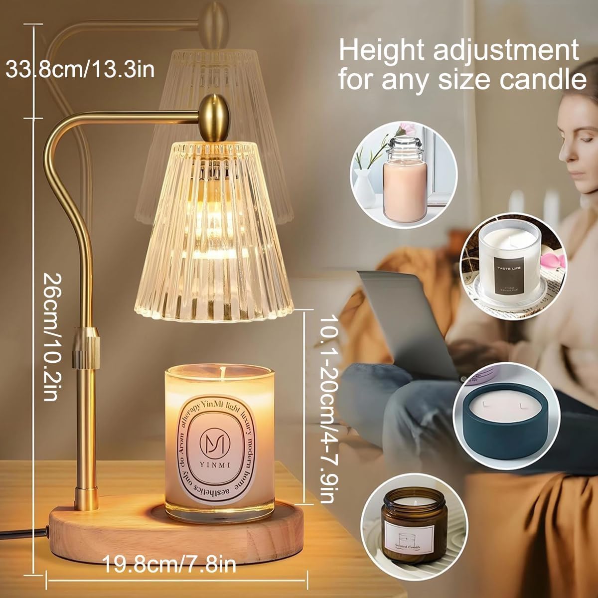 Candle Warmer Lamp – Candle Warmer Lamp with Timer and Dimmer Adjustable Height, Electric Wax Melt Warmer with 2 Bulbs for Scented Jar Candles Home Decor