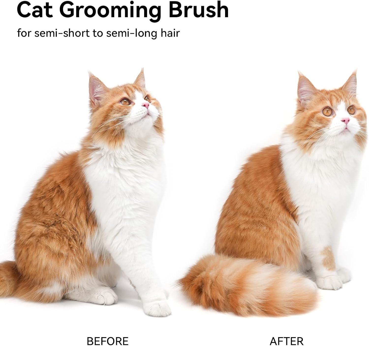 Aumuca Cat Brush with Release Button, Cat Brushes for Indoor Cats Shedding, Cat Brush for Long or Short Haired Cats, Cat Grooming Brush, Cat Comb for Kitten & Rabbit, Massage Removes Loose Fur (White)