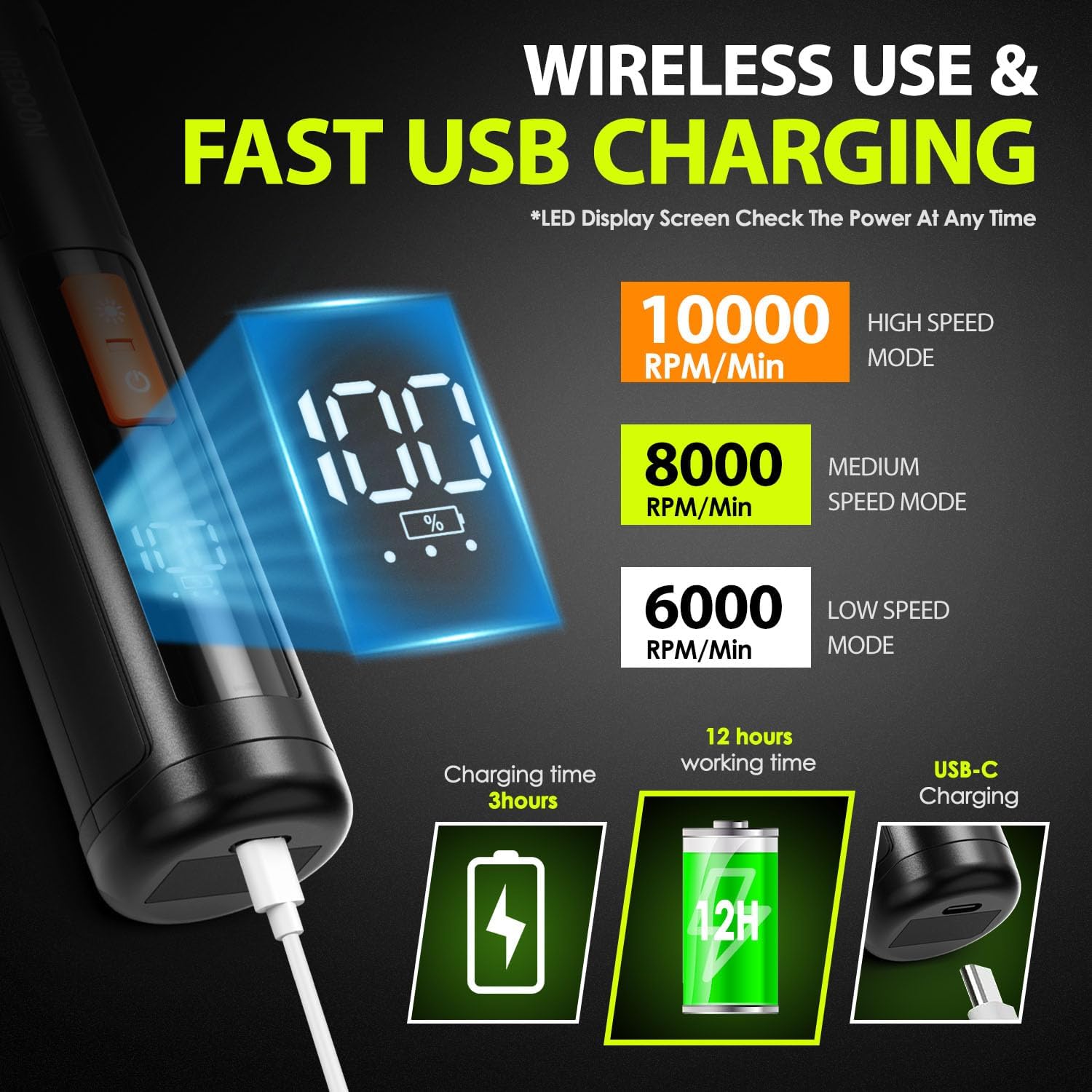 Dog Nail Grinder Upgraded – Professional 3-Speed Super Quiet and Low Vibration Electric Pet Nail Grinder with 4 LED Lights – Painless Paws Grooming & Smoothing for Small to Large Dogs (Black)