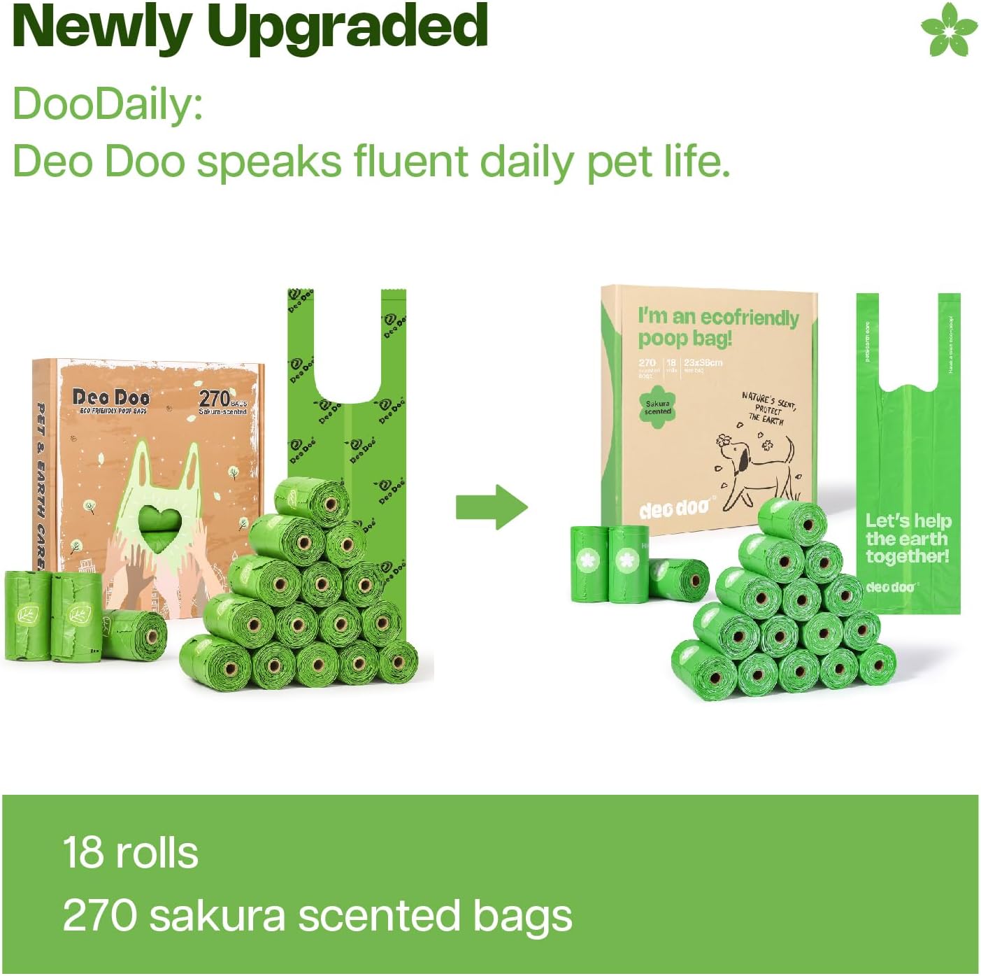 Dog Poo Bags with Handles, Sakura Scented, 270 Counts (18 Rolls), Leak Proof and Extra Thick Waste Bags Refill Rolls for Dogs