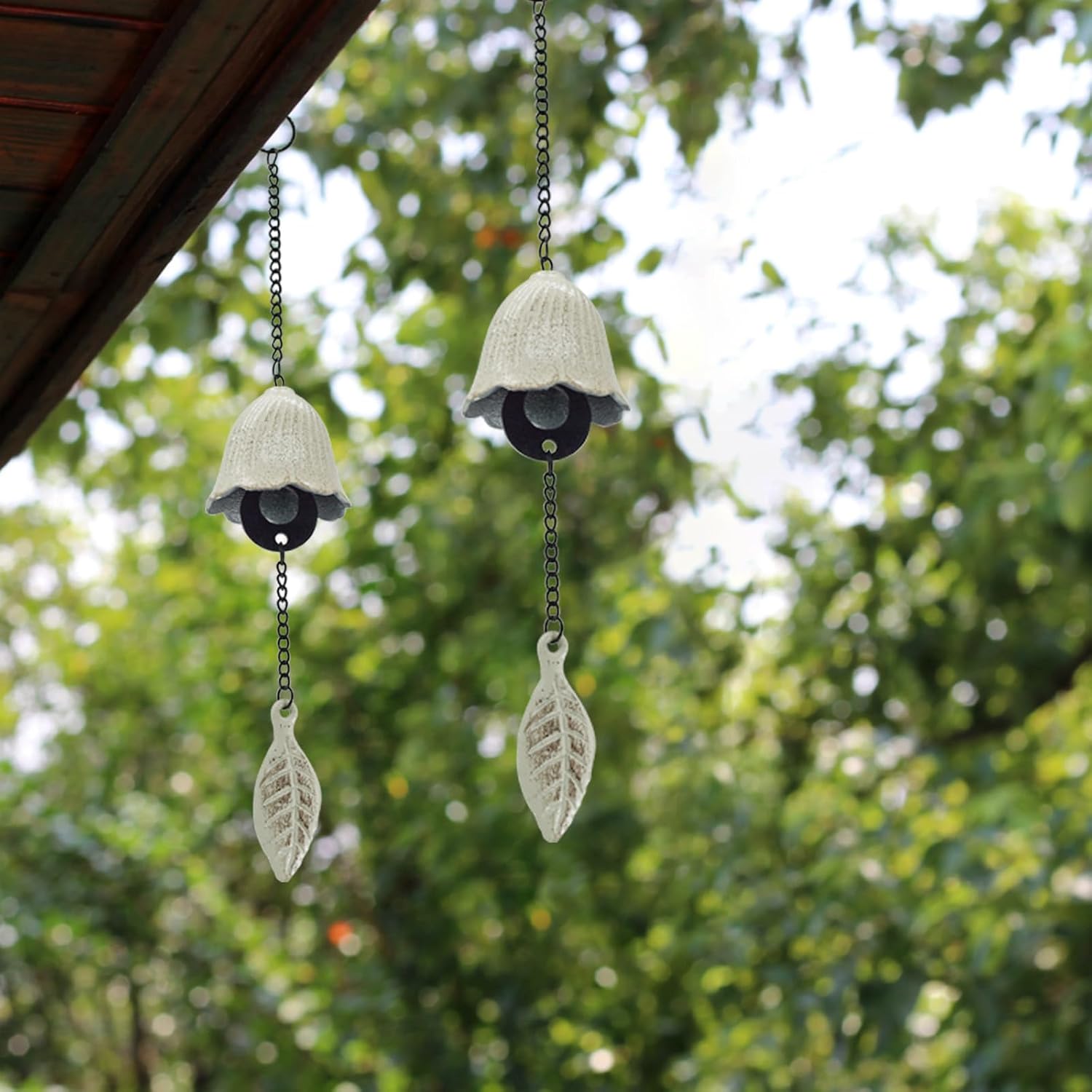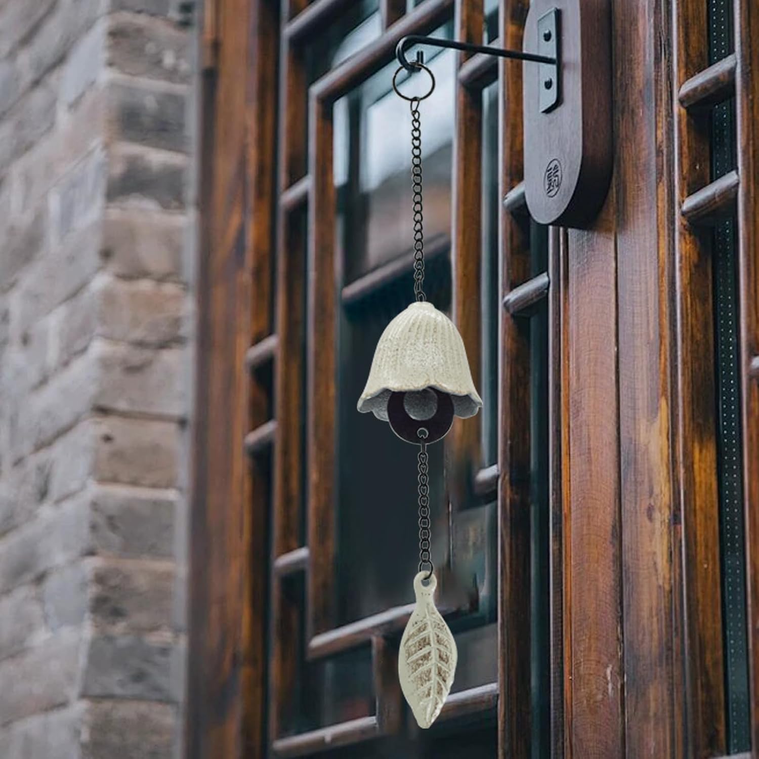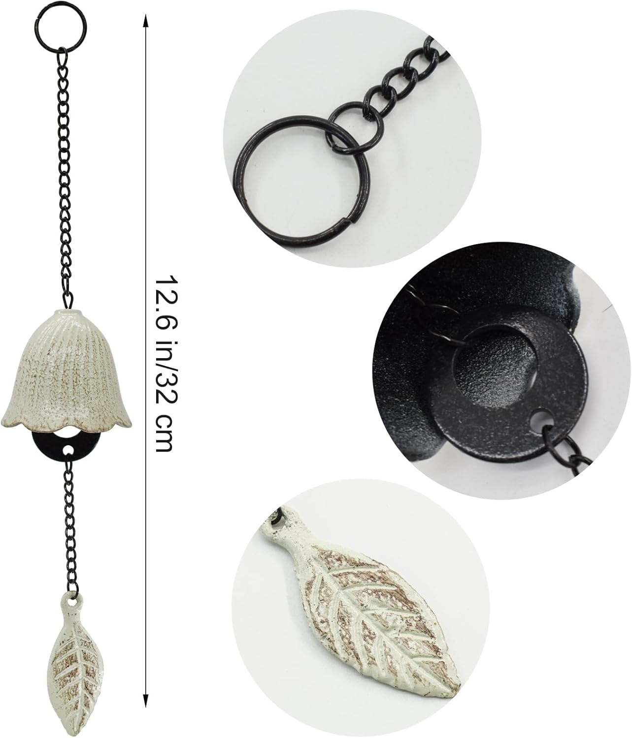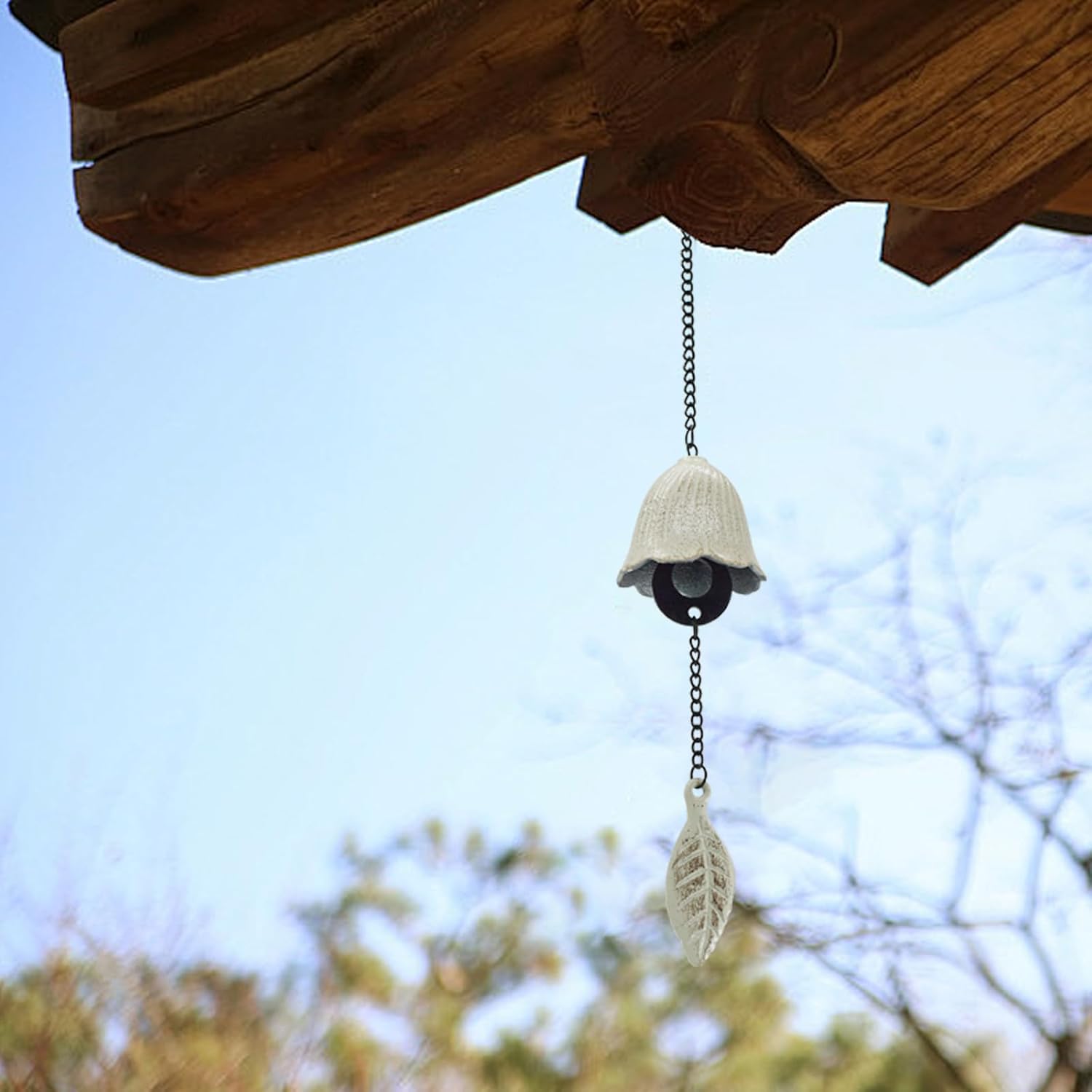 MrMrKura Japanese Leaf Wind Chimes, Small Wind Bell Pendent for Outside Hanging Cast Iron Wind Chime Ornament for Bless Garden Backyard Home Decor (White)