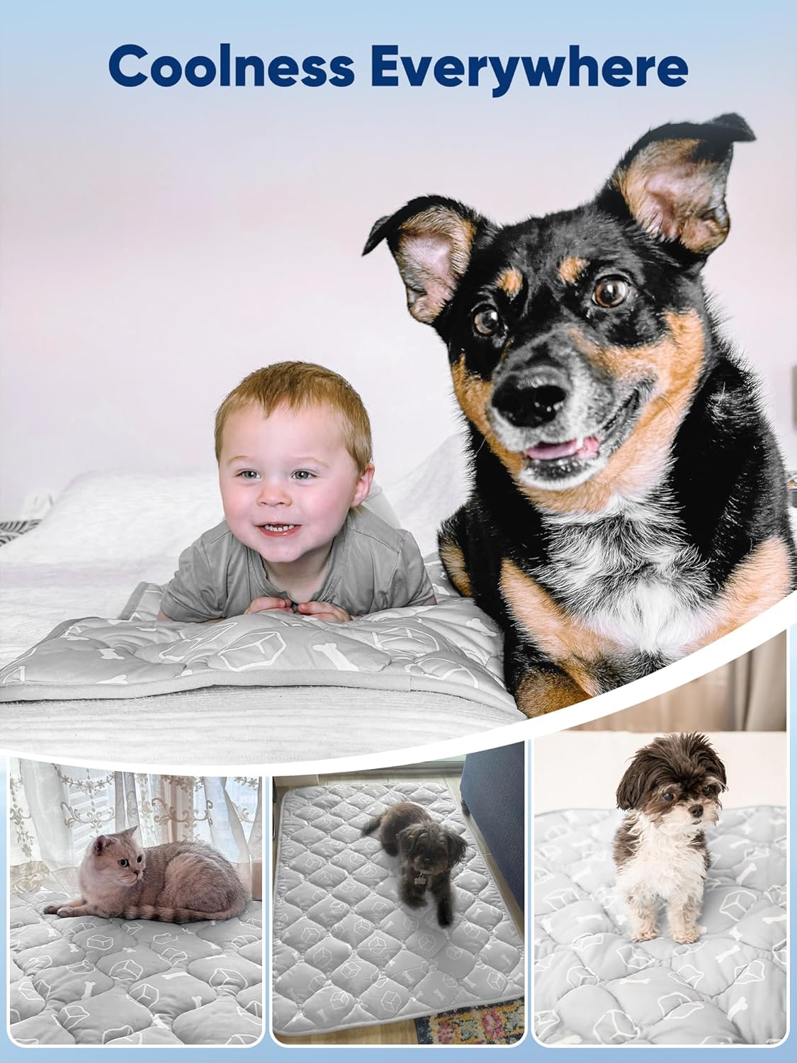 Rywell Dog Cooling Mat Elegant Grey,90 * 70cm Thicken Cooling Mat for Dogs,Dog Cooling Mat Large with Endothermic Color Changing Arc-Chill Cooling Fiber(Q-Max>0.5), Washable, Non-Toxic&Non-Slip
