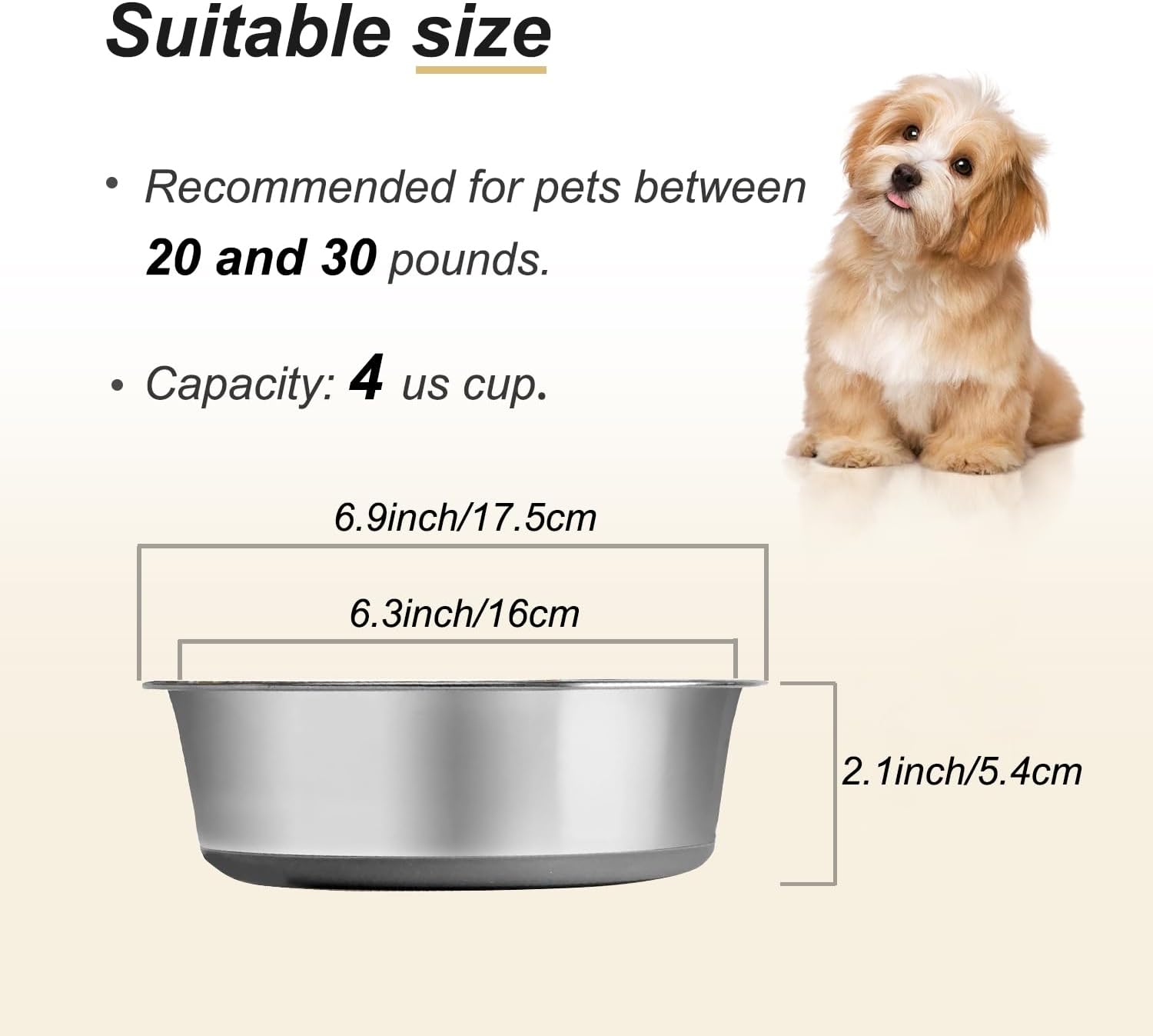 2 Pack Stainless Steel Metal Dog Bowls, Nonslip Rubber Bottom, Dishwasher Safe, Easy to Clean, Each Holds 4 US Cup (4 Cup)